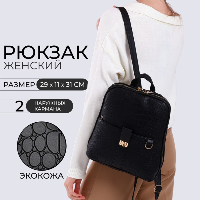 Рюкзак женский городской TEXTURA, на молнии, с карманом, чёрный