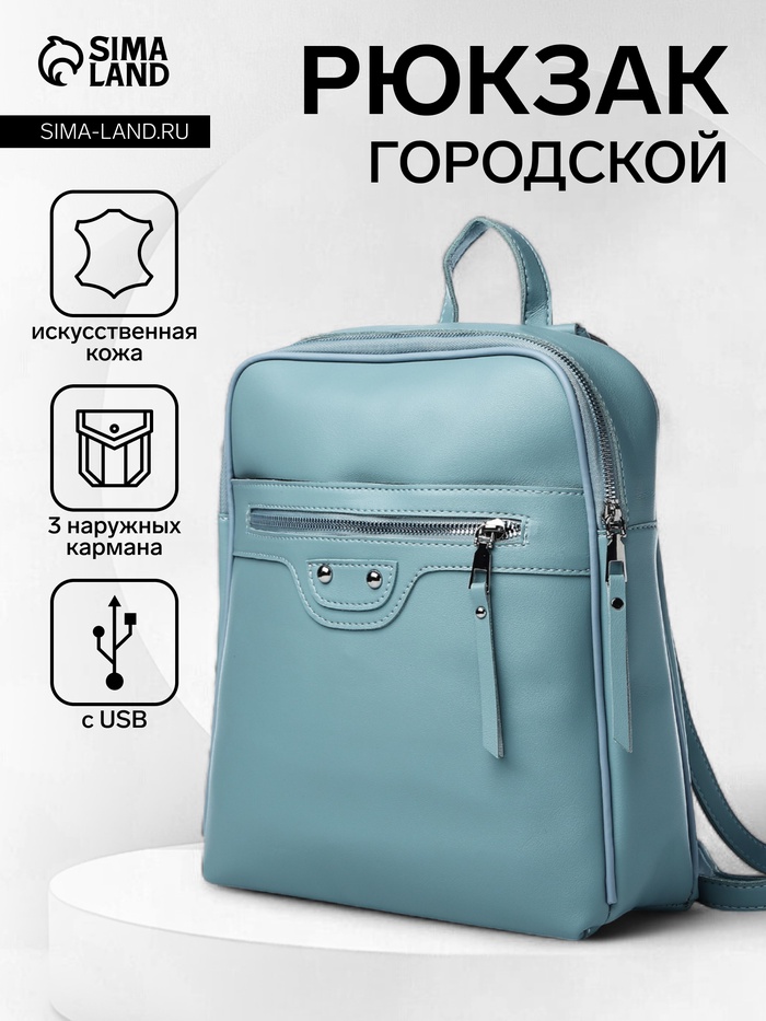Рюкзак-мини женский Etherion на молнии, с карманами, голубой