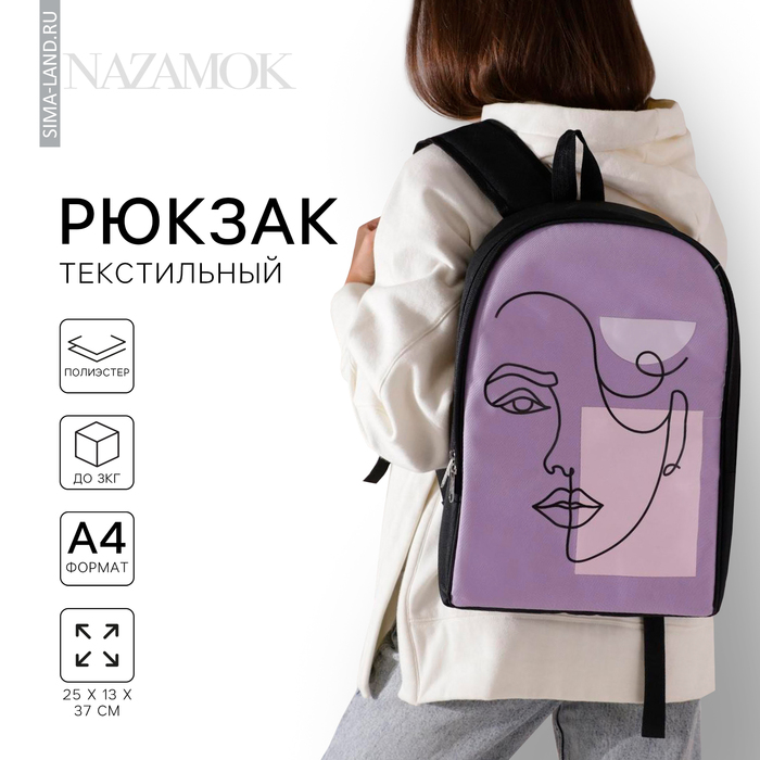 Рюкзак школьный текстильный Face line, 25×13×37 см, сиреневый