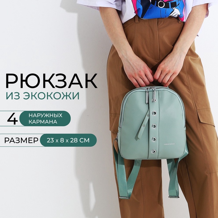 Рюкзак на молнии, 4 наружных кармана, цвет зелёный