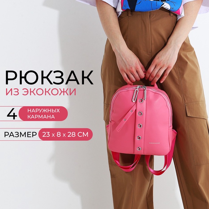 Рюкзак на молнии, 4 наружных кармана, цвет розовый