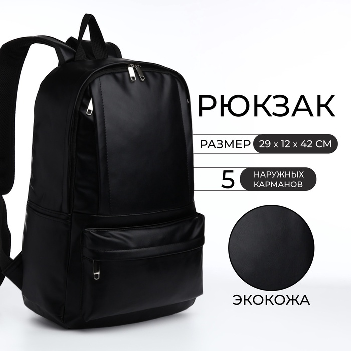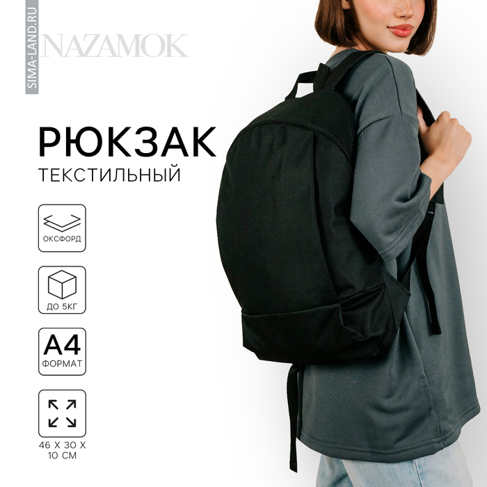 Рюкзак школьный текстильный 46×30×10 см, вертикальный карман, чёрный