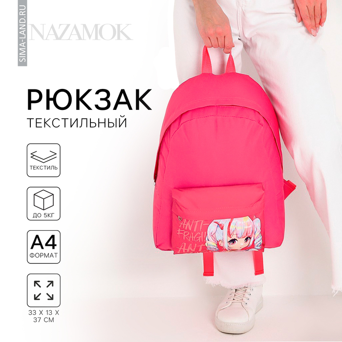 Рюкзак школьный текстильный «Аниме», с карманом, розовый