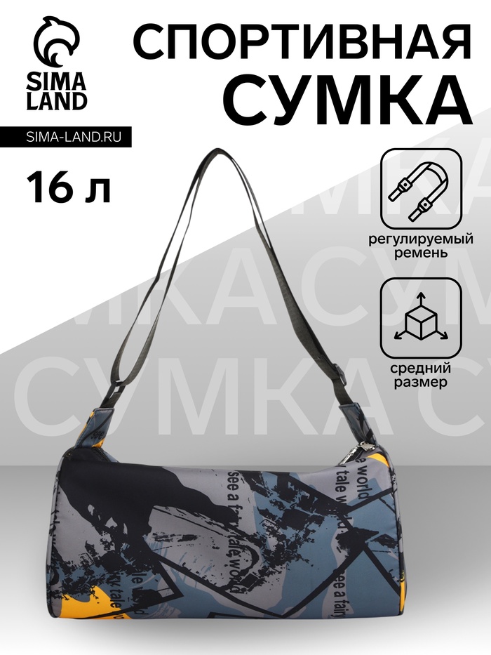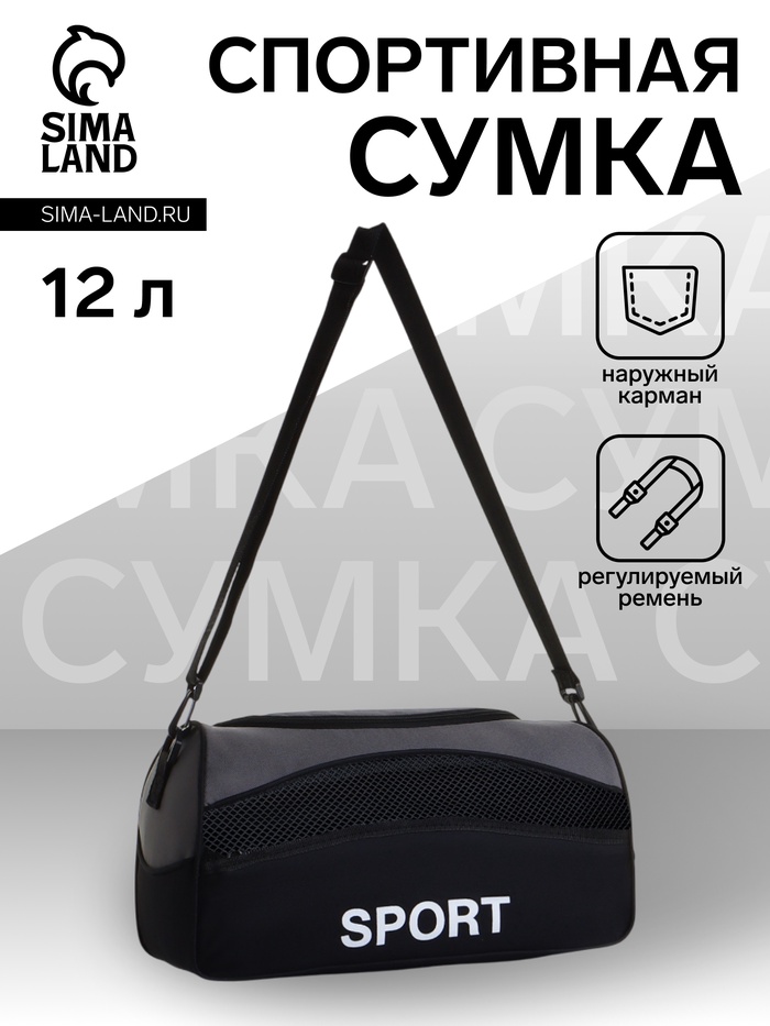 Сумка спортивная на молнии, наружный карман, регулируемый ремень, маленький размер, цвет чёрный/серый