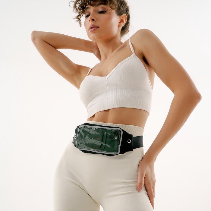 Сумка спортивная на пояс для телефона ONLYTOP, 23 см, чёрная