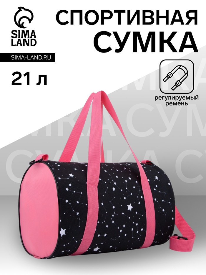 Сумка спортивная женская на молнии, длинный ремень, маленький размер, цвет чёрный/розовый