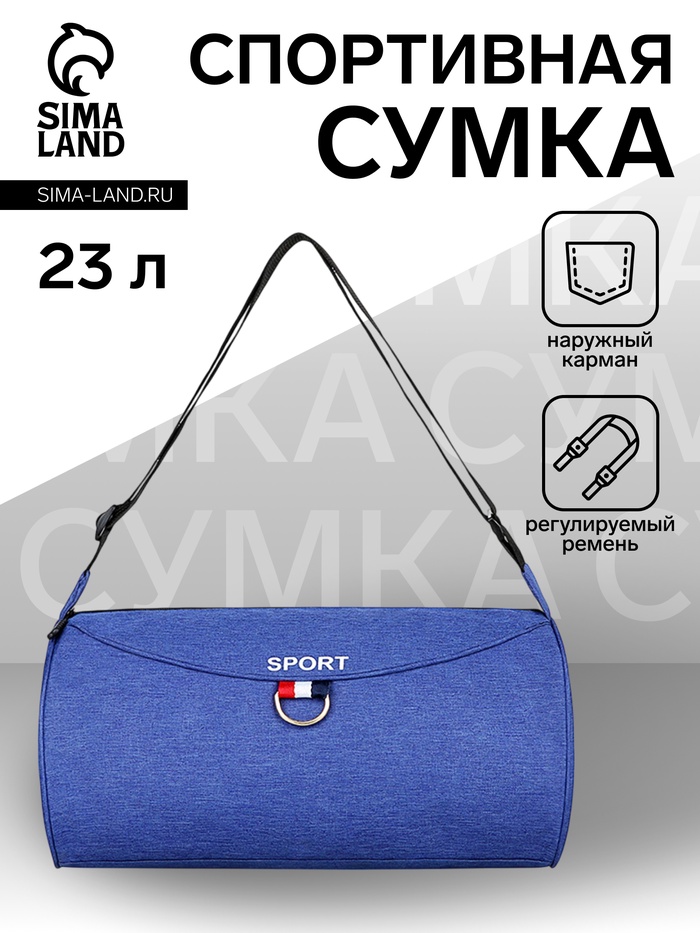 Сумка спортивная на молнии, наружный карман, регулируемый ремень, средний размер, цвет синий