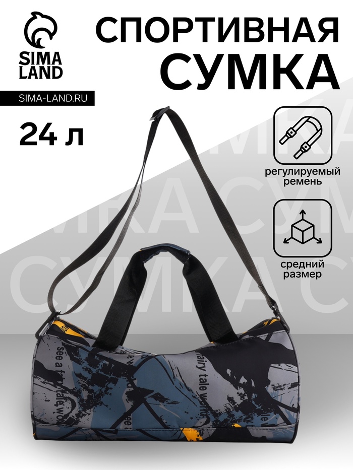 Сумка спорт Push your limit 40×25×18 см, отдел на молнии, длинный ремень, чёрная
