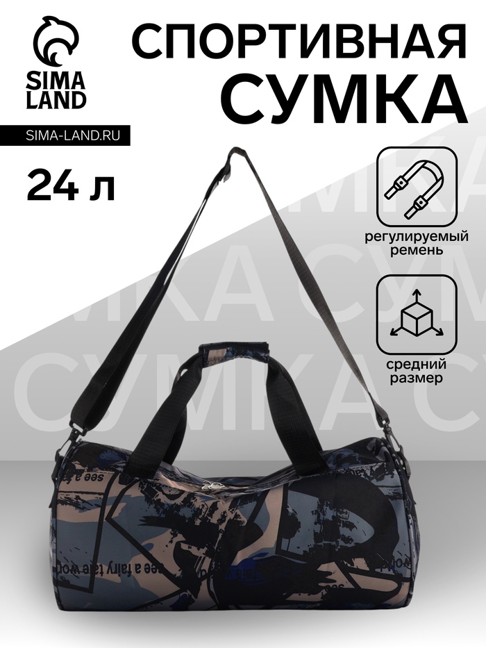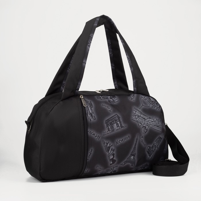 Сумка спортивная на молнии, регулируемый ремень, средний размер, цвет чёрный/серый