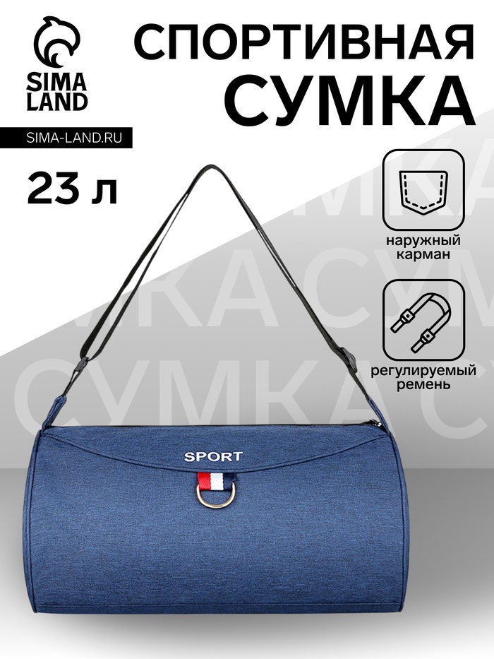 Сумка спортивная на молнии, наружный карман, регулируемый ремень, средний размер, цвет тёмно-синий