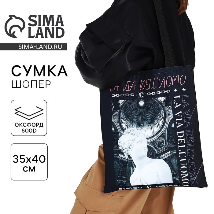 Шопер «Искусство», 35×0.5×40 см, отдел без молнии, без подклада, чёрный