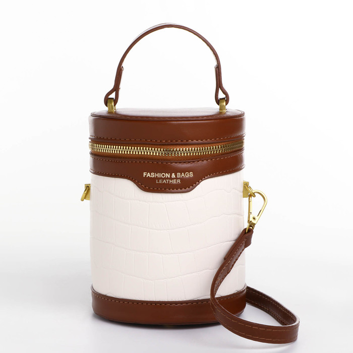 Сумка женская кросс-боди на молнии, 13×11×16 см, белый/коричневый
