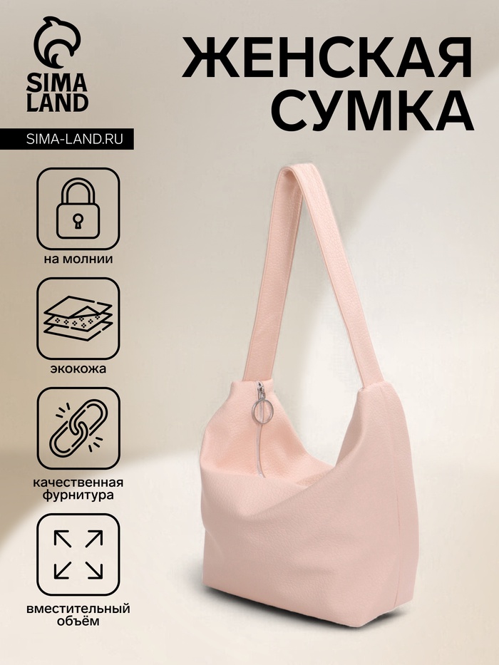 Сумка - мешок женская на молнии, 30×13×34 см, нежно-розовая