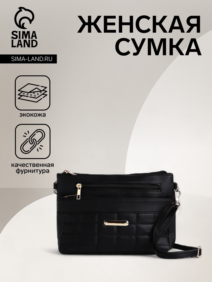 Сумка женская кросс-боди на молнии, 19×7×15 см, со стёжкой, чёрная