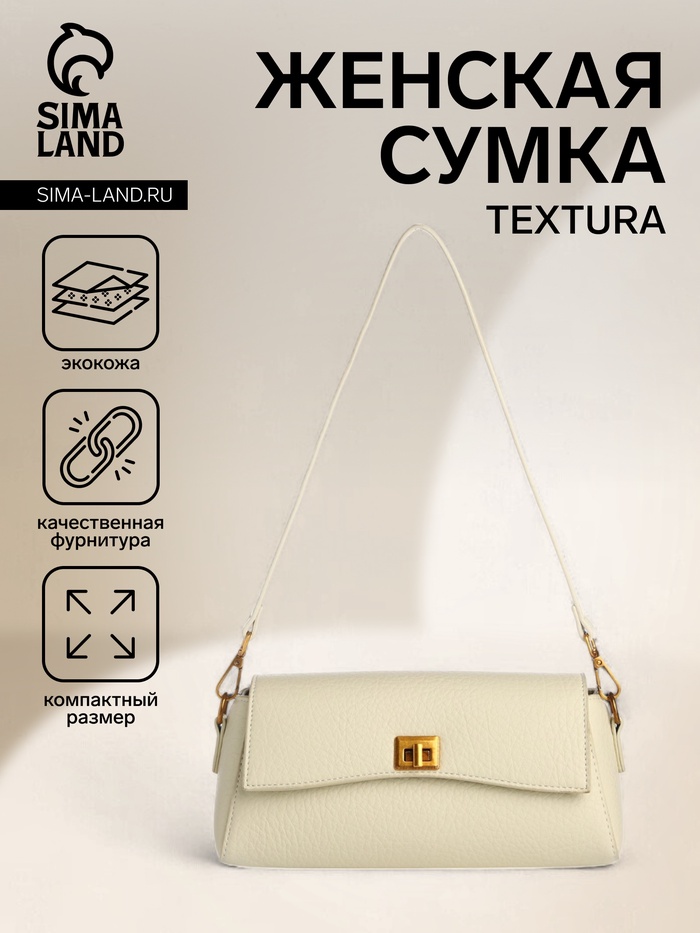Сумка женская мессенджер TEXTURA на клапане, 26×9×12 см, молочная