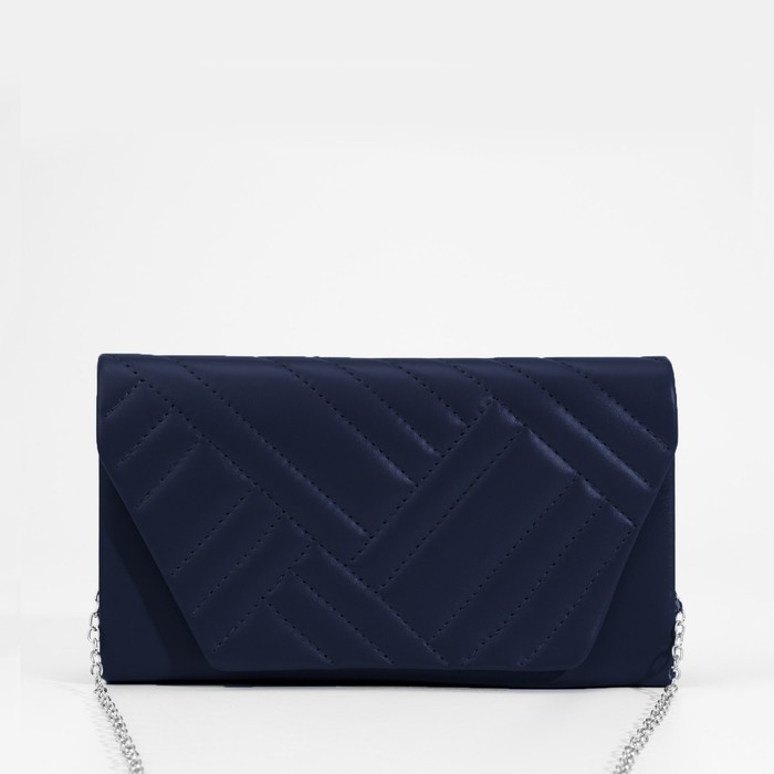 Сумка-клатч женская на магните, с серебристой цепочкой, однотонная, со стёжкой, тёмно-синяя
