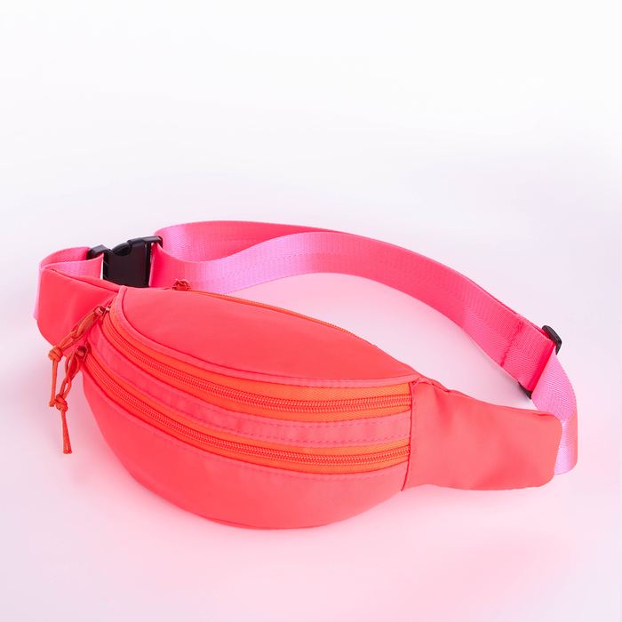 Поясная сумка на молнии, 2 кармана, цвет коралловый