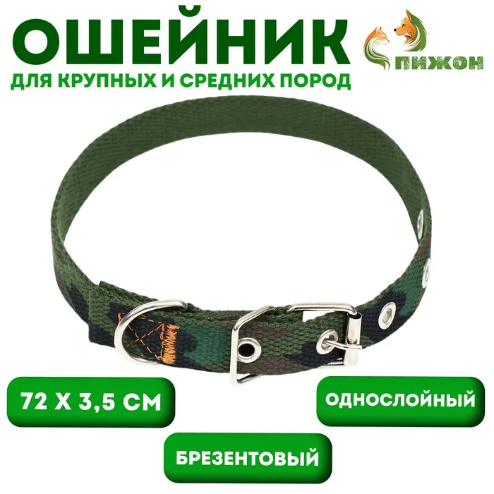 Ошейник брезентовый однослойный "Камуфляж", 72 х 3,5 см