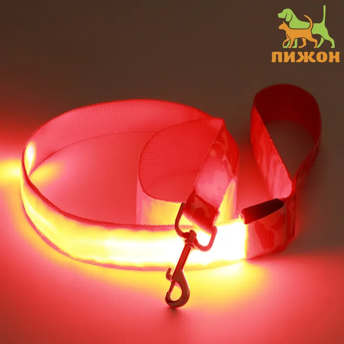Поводок с подсветкой Милитари 3 режима свечения, 120 х 2,5 см, красный
