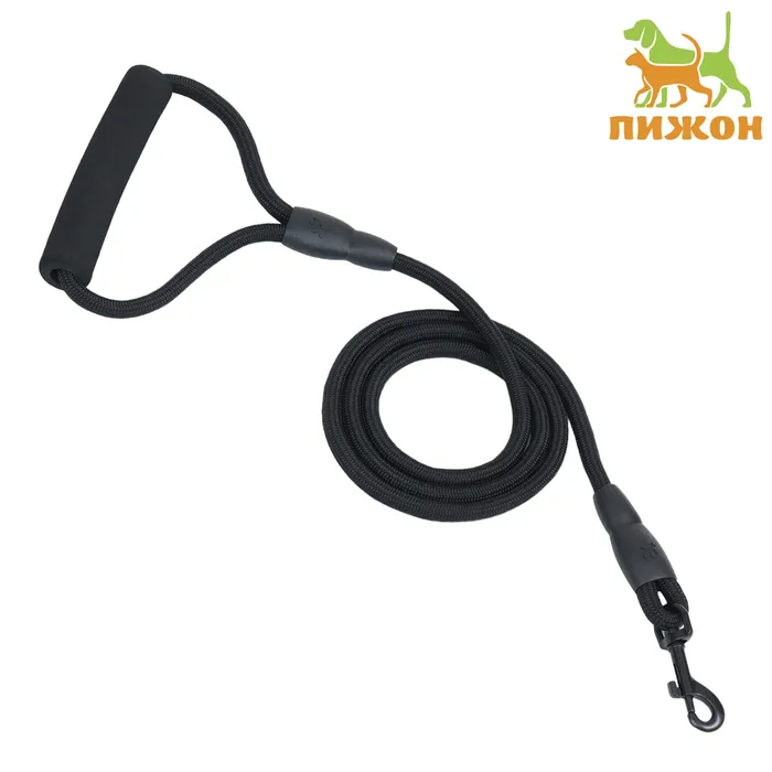 Поводок круглый "Тон", с мягкой ручкой из паралона, 120 х 0,8 см, черный
