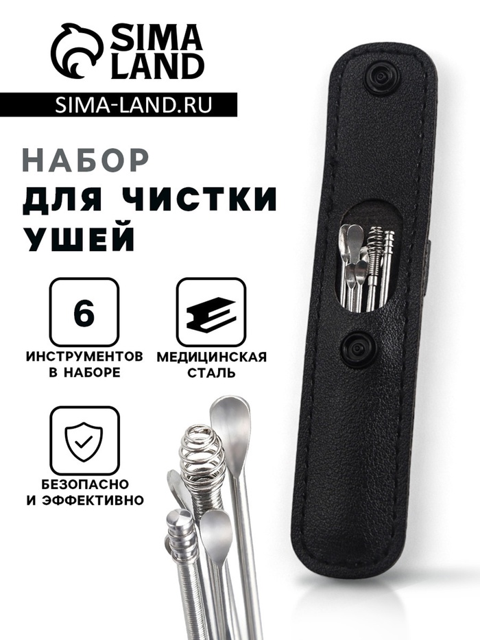 Набор для чистки ушей, 3 предмета, 15.3×2.4×1.1 см, в пластиковом футляре, чёрный