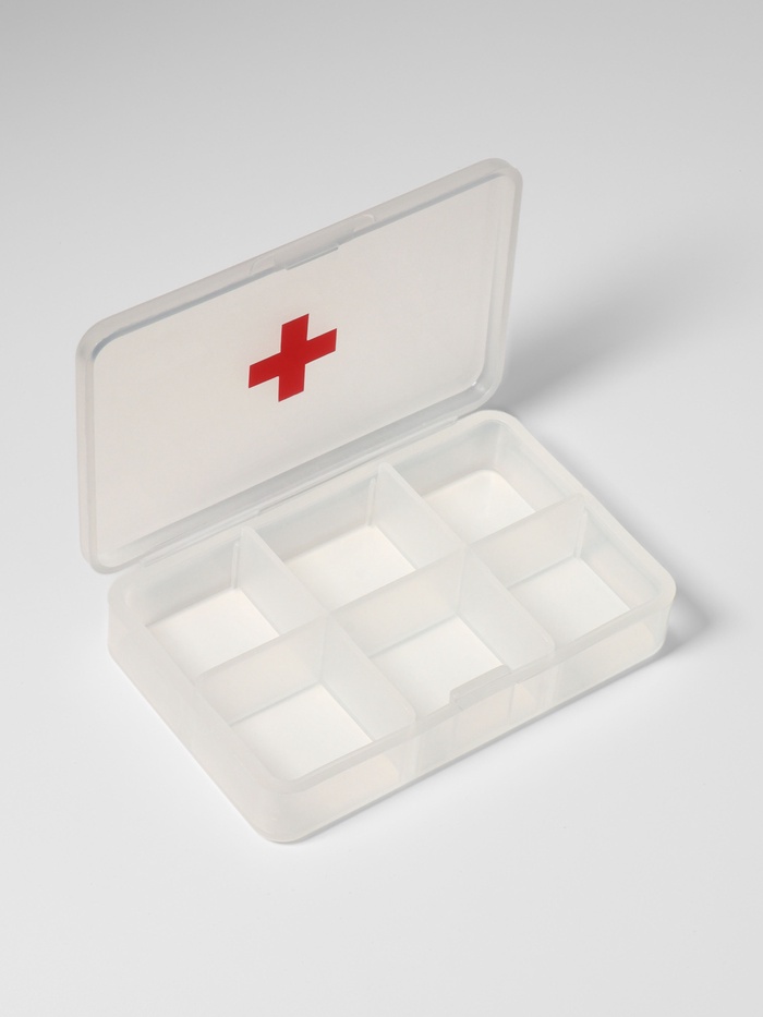 Таблетница «Быстрая аптечка», 6 секций, 8,7 × 5,5 × 1,8 см, цвет прозрачный
