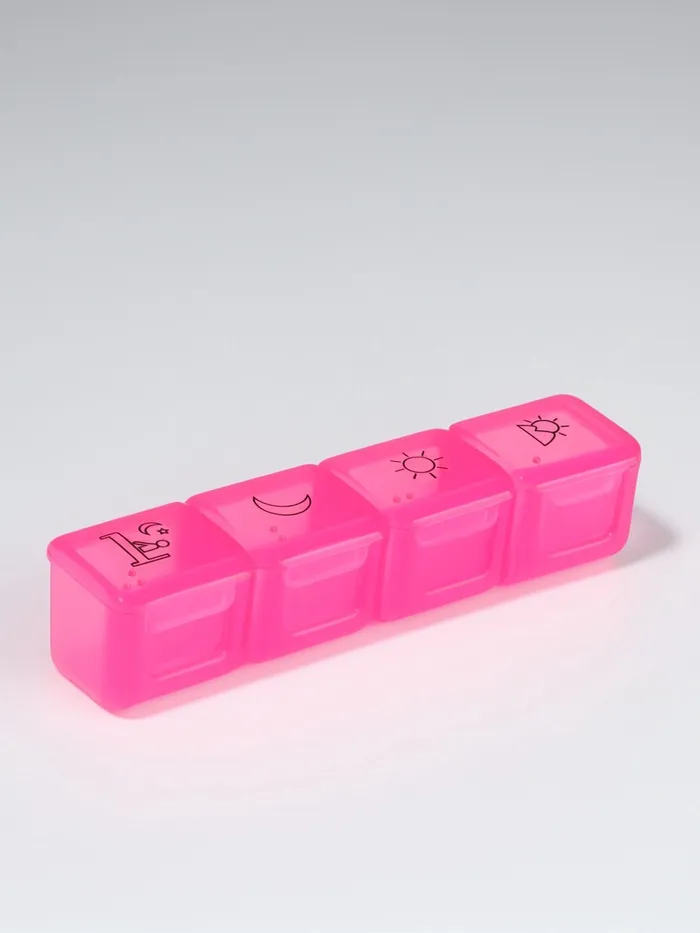 Таблетница, 10×2.3×2.3 см, 4 секции, розовая