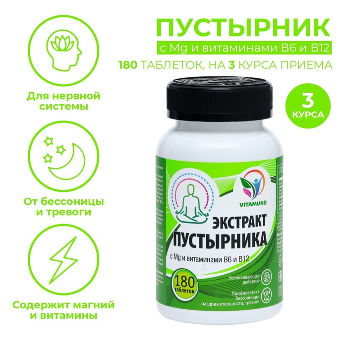 Магний В6 и В12 с экстрактом пустырника, от стресса, бессонницы,180 таблеток по 0,5 г