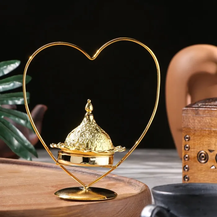 Курильница для благовоний порошковых и конусов "Сердце", золотистый, 14,5х13,5 см