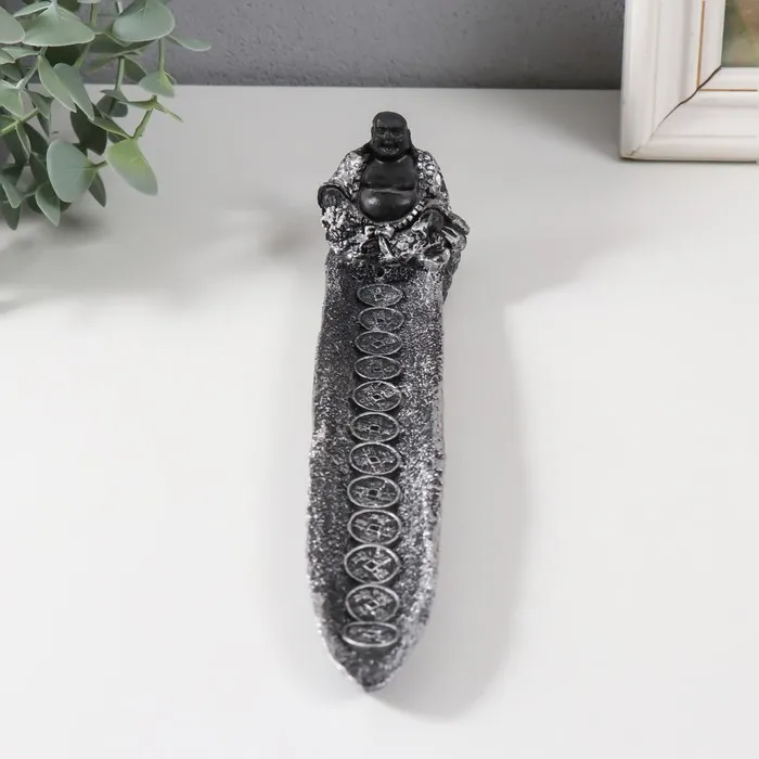 Подставка для благовоний «Хотей в серебристом халате», полистоун, серебро, 22.5×4.5×5 см