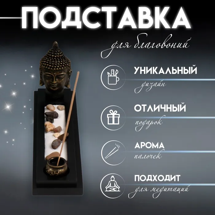 Подставка для благовоний с аромапалочками «Голова Будды», полистоун, сад камней, 29×7×11.5 см