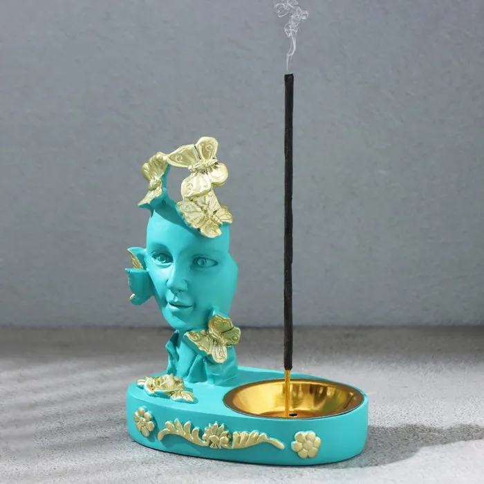 Курильница для благовоний конусов, порошковых и палочек TAKE IT EASY «Лицо», бирюзовая