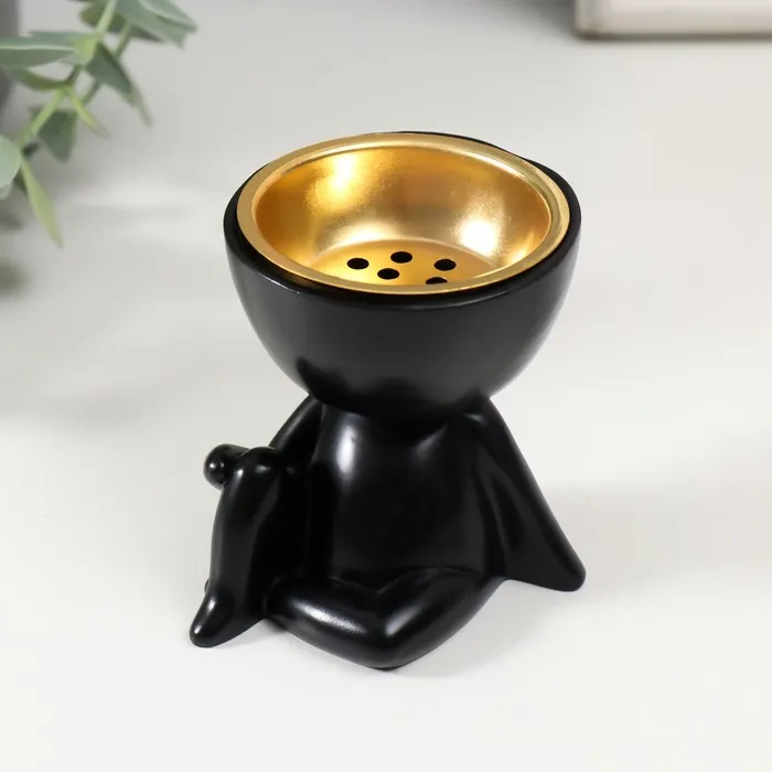 Курильница для благовоний, подставка для конусов «Человечек сидит», полистоун, чёрный, 6,7х6х6,8 см