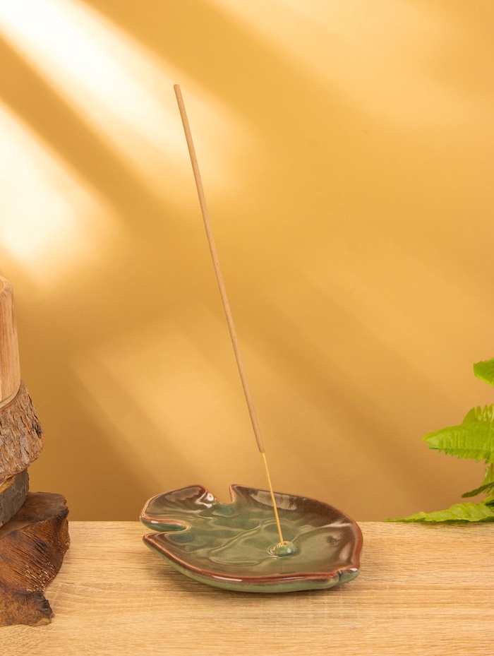 Подставка под благовония «Длинный лист», 17×7×1.5 см, керамика, зелёная