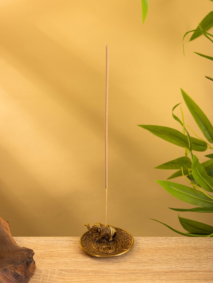 Подставка под благовония "Слоник на тарелке" латунь 7 см