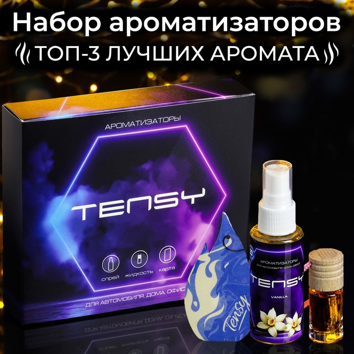Набор ароматизаторов для авто Tensy, 3 предмета: спрей, мешочек, бутылочка