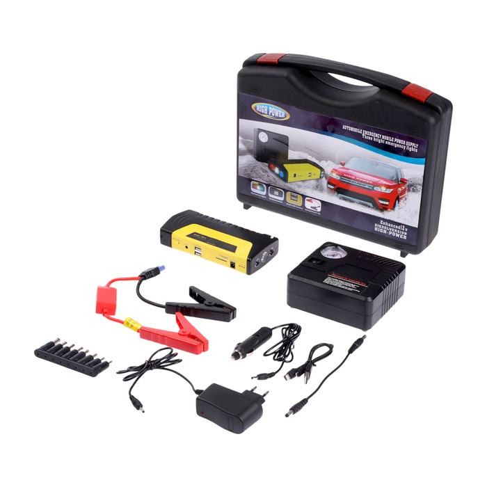 Пуско-зарядное устройство 5400 мАч, 3 LED, 2USB, DC 12V, компрессор