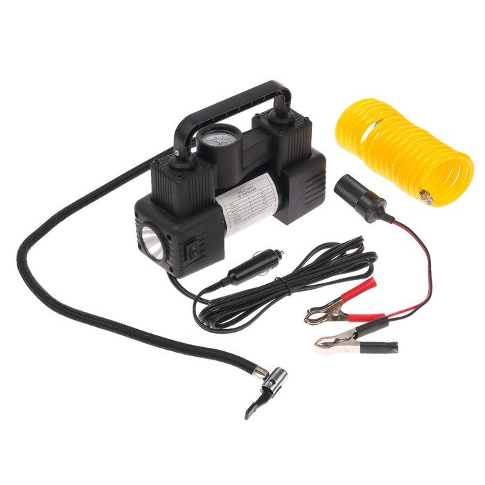 Компрессор автомобильный двухпоршневой, 12 В, фонарь, 25 л/мин, сумка, черный