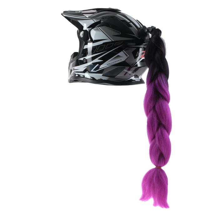 Коса на шлем, 60 см, черно-фиолетовый, крепление на присоску,