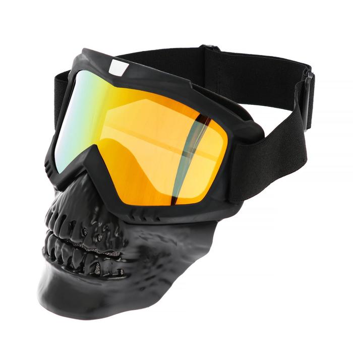 Очки-маска для езды на мототехнике, разборные, визор оранжевый, чёрные