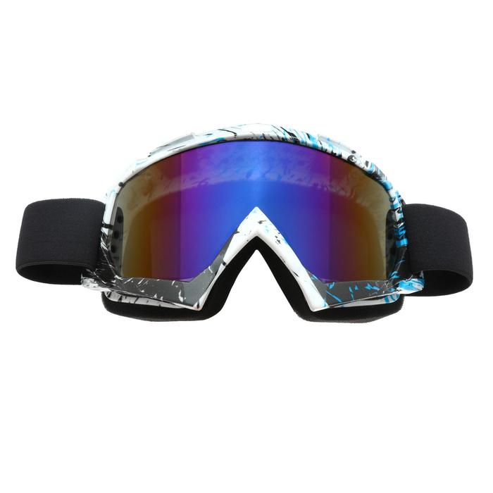 Очки-маска для езды на мототехнике, стекло сине-фиолетовый хамелеон, бело-синие, ОМ-15