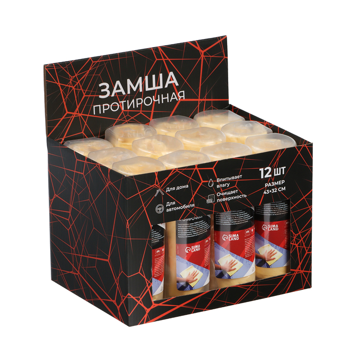 Замша протирочная TORSO 43х32 см в тубе, набор 12 шт