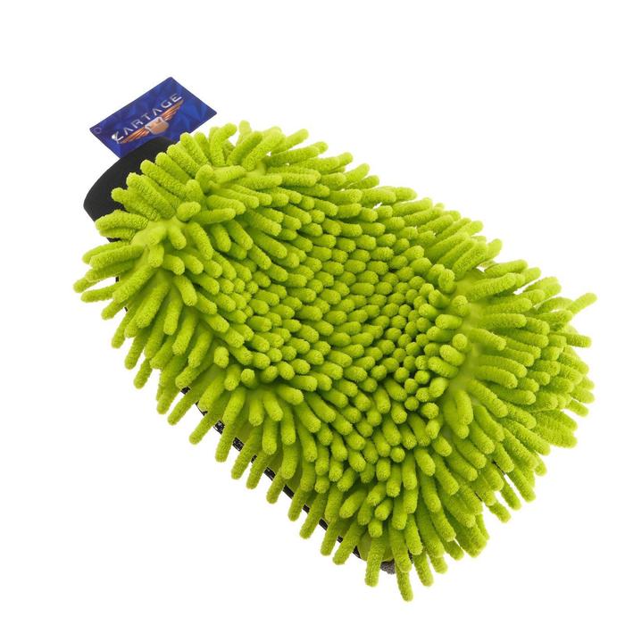 Варежка для мытья автомобиля CARTAGE, 25×19 см, двухсторонняя, зелено-серая