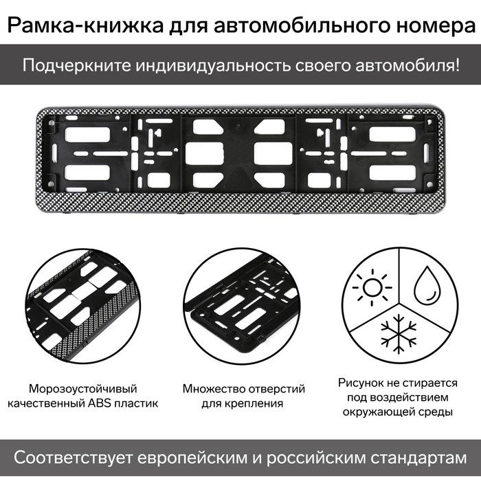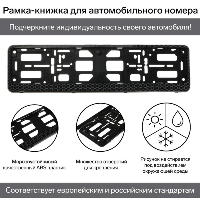 Рамка для автомобильного номера, книжка, черная, «Соты»