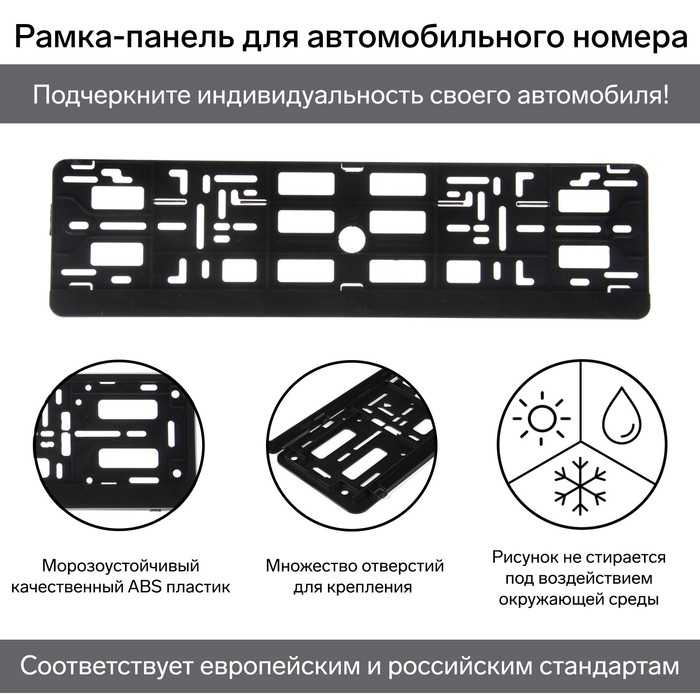 Рамка под номерной знак на мотоцикл/мопед/квадроцикл, 190*145 мм, черная, AFC-14, ГОСТ Р 50577-2018