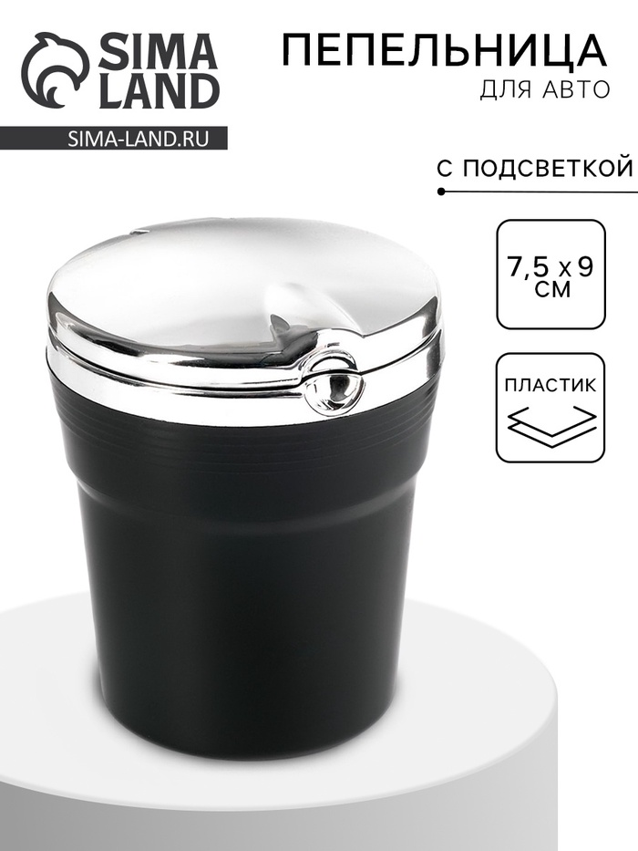 Пепельница для авто, с подсветкой 7.5×9.3 см, чёрная