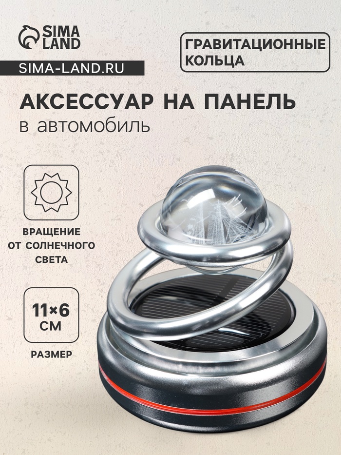 Аксессуар на панель автомобиля, гравитационные кольца, вращается от солнца, металл, серебро