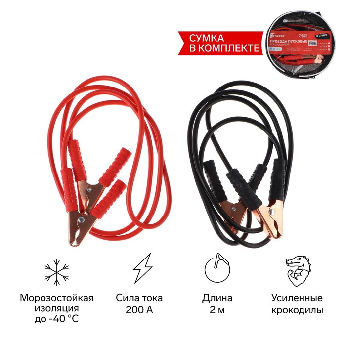 Провода пусковые для прикуривания автомобиля TORSO, 200 А, 2 метра, сумка