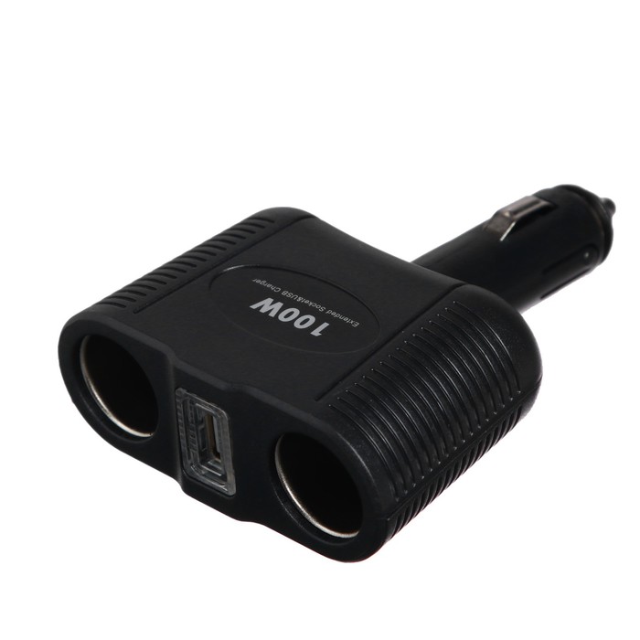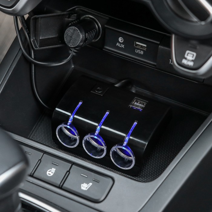 Разветвитель прикуривателя на 2 слота и 1 USB, с подсветкой, 100 Вт