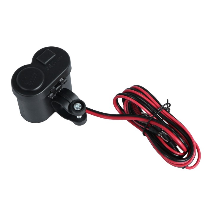 Зарядное устройство на руль мотоцикла, с тумблером, USB + прикуриватель, провод 120 см